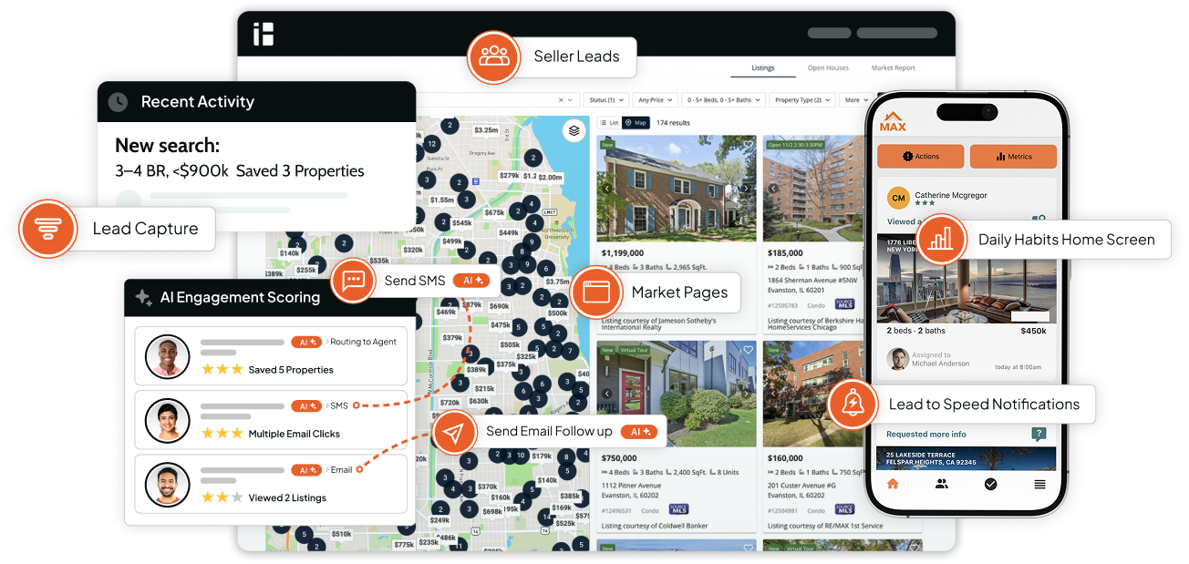 Overnight leads show up with what they searched and one-tap options to respond.